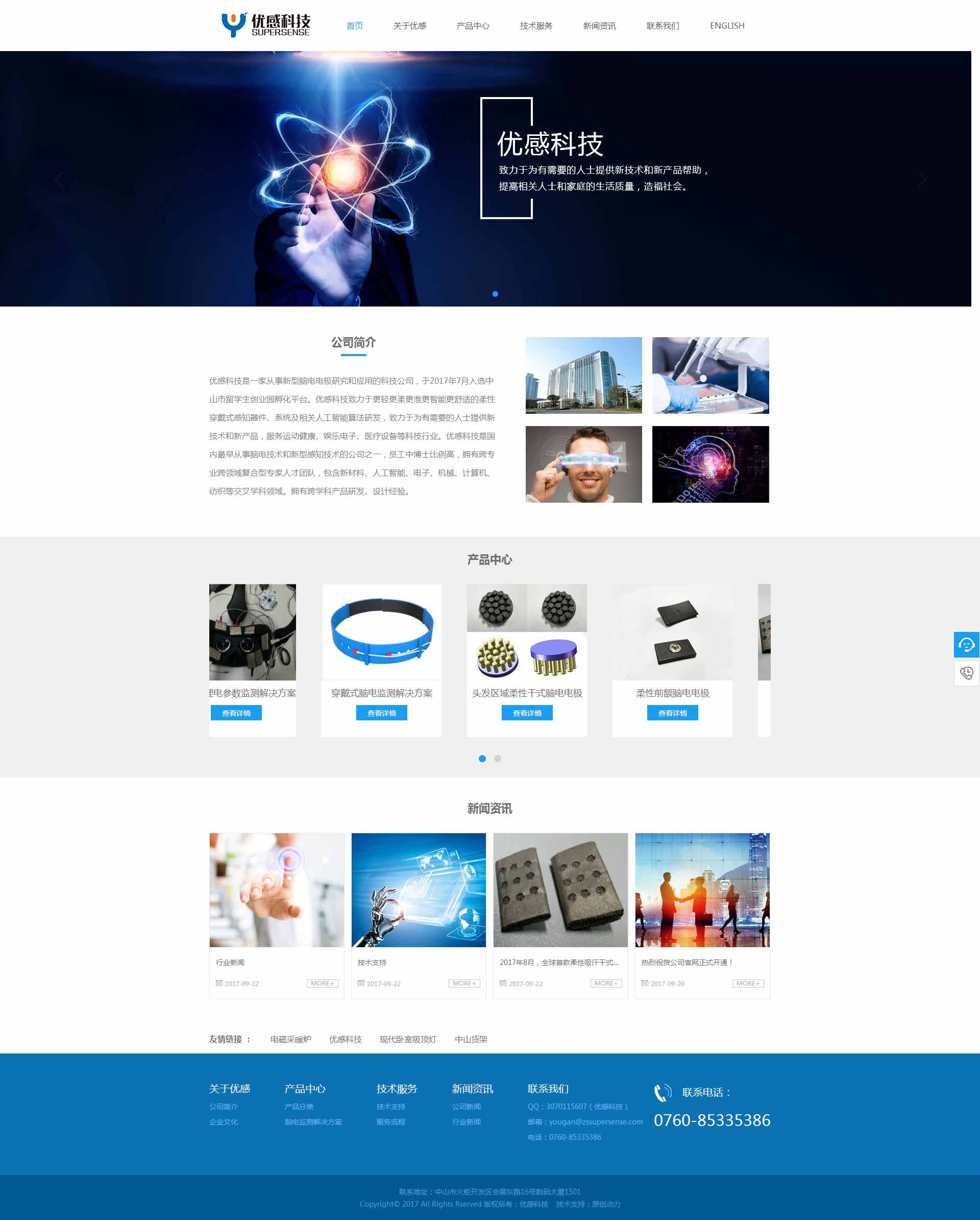 优感科技是一家从事新型脑电电极研究和应用的科技公司,于2017年7月入选中山市留学生创业园。优感科技致力于更轻更柔更准更智能更舒适的柔性穿戴式感知器件、系统及相关人工智能算法研发,致力医学教育、运动医学、认知神经科学、体育科学、人因工程,材料工程等行业,为客户提供有竞争力的产品解决方案和服务。