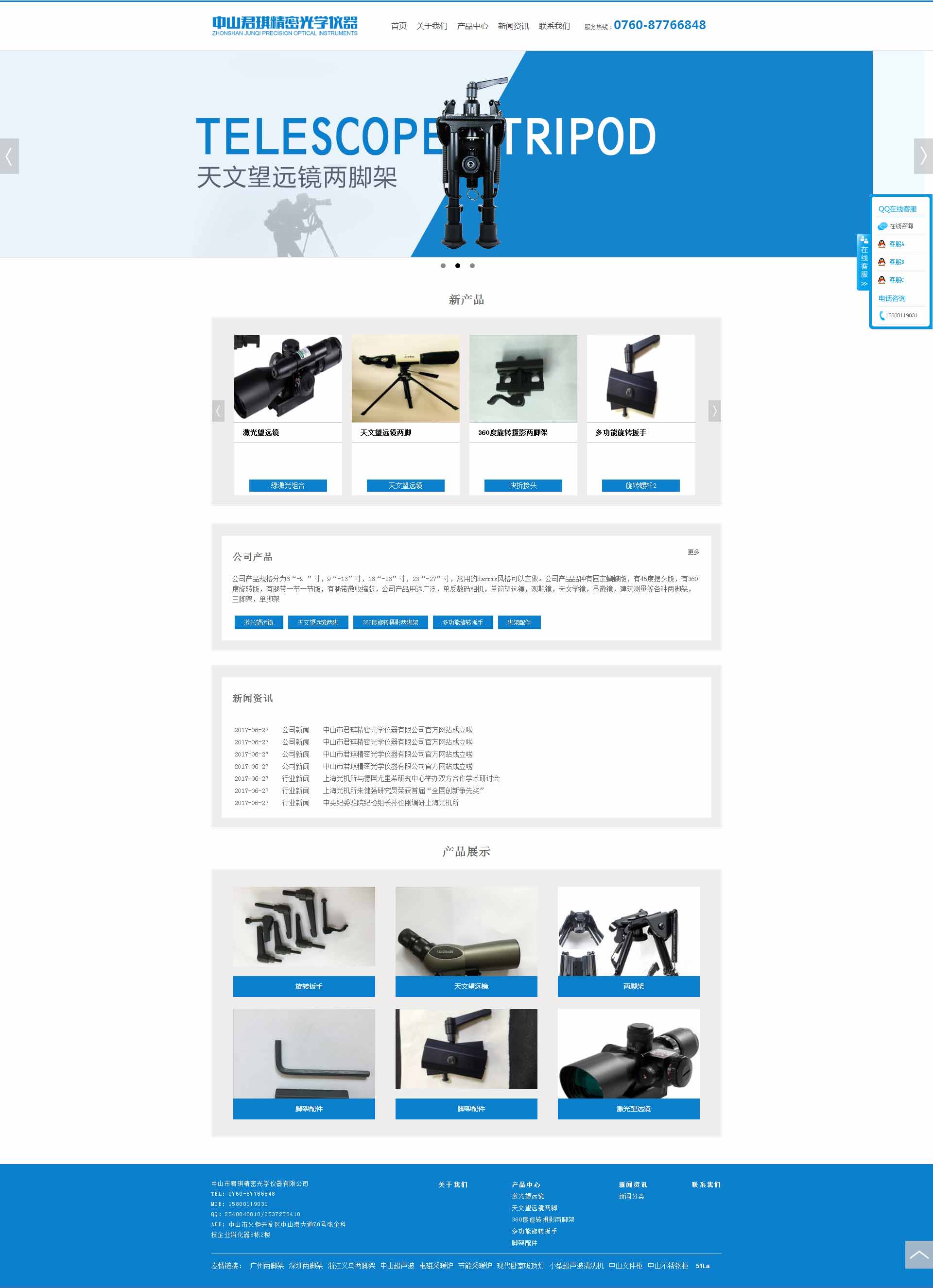中山市君琪精密光学仪器有限公司,位于国家高科技重点生产基地的广东中山市火炬高新技术开发区办公大楼对面。是一家崛起专业化光电中型生产脚架之一。中山君琪精密光学仪器有限公司是一家专业从事精密 脚架产品及产品研发,生产和销售的制造企业之一。公司创建于2011年的一个冬天,美丽的火炬开发区高技术产业基地 ------珠三角中山市。