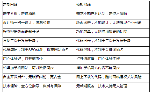 个性化定制的网站和模板网站的区别,以下表格详细对比: