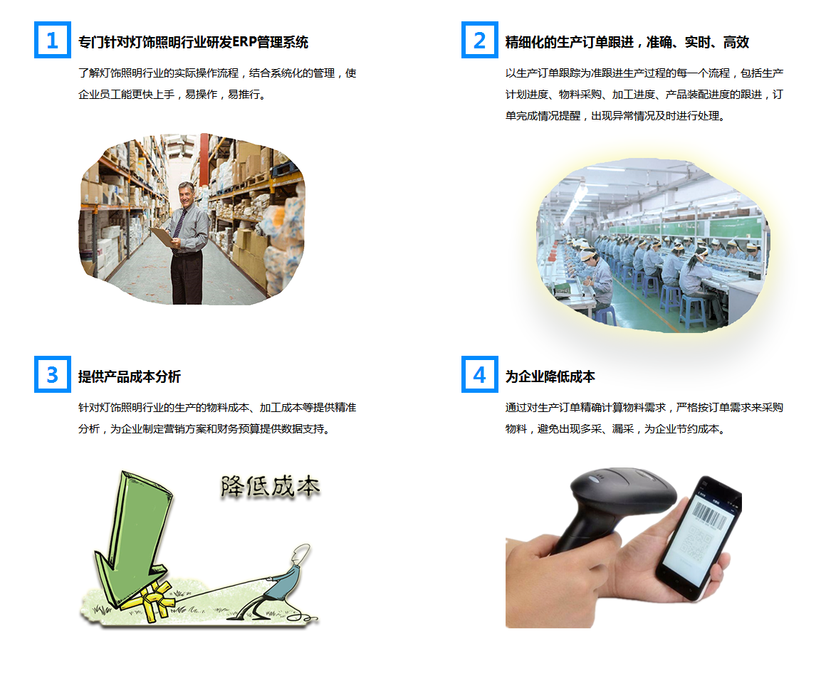 灯具行业一般来说,品种比较多,客户也不少,而且更新换代也比较快,灯具价格也比较灵活,针对不同客户有不同的价格。在多个门店情况下,对产品库存数量查询要求比较高等等。整体情况总结如下: