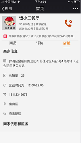 商家可以设置营业时间,配送范围、时间、方式及店铺图标,展示店铺形象名片