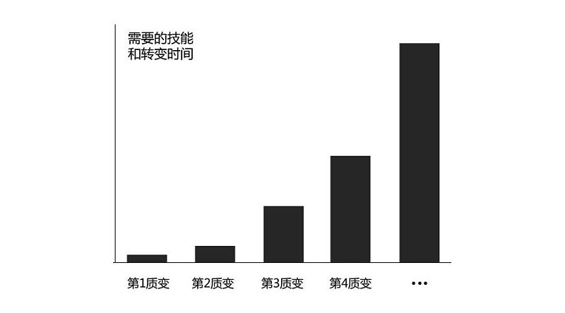 再从大量软件练习到第一次接单赚得收入,这又是一次量到质的变化,我们暂定它为第二次质变。如果想使收入上升到一个层级,完成第三次质变,则需要更多复杂的量变积累。而不仅是一二阶段所需要积累的内容。