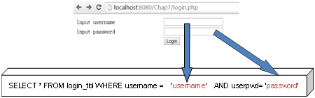 攻击者将精心构造的字符串或数字输入插入到SQL语句中,例如如下的用户登陆页面:
