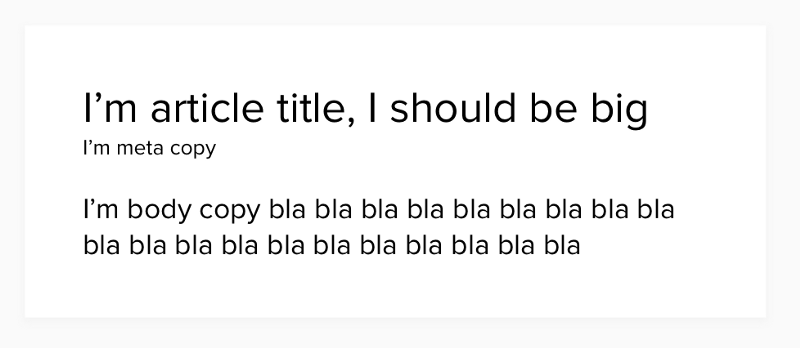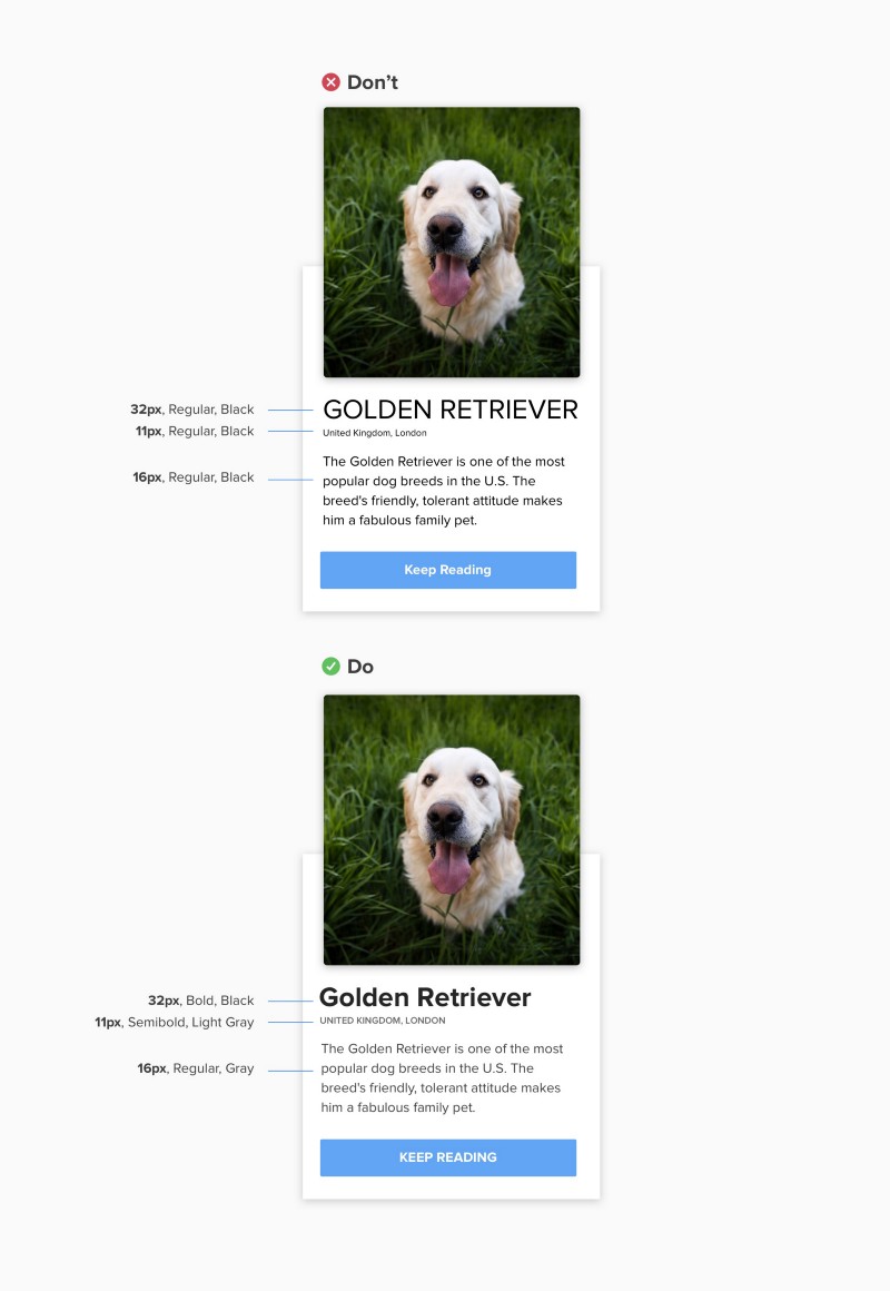 文字的层次结构不只是小和大的关系,它需要文字在大小、字重和颜色三个方面进行正确的组合,形成对比,对比度越大越好。(译者注:我认为对比度也不能太大,合适即可。)