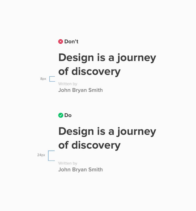 以我上面的例子来看,我的目标是要把标题和作者区分开,用一个更大的24px作为间隔会更加合适。