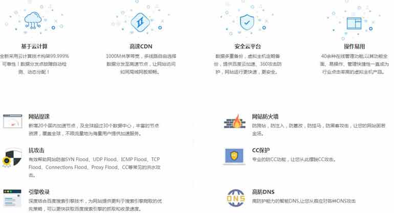 独享CPU:单核(Xeon 2.26GHz)独享内存:1GB独享带宽:1Mbps网页空间:5GB数据库空间:500MB MySQL 5.1(资源共享)网站语言:PHP 5.2/5.3/5.4/5.5/7.0/7.1、HTML、WAP